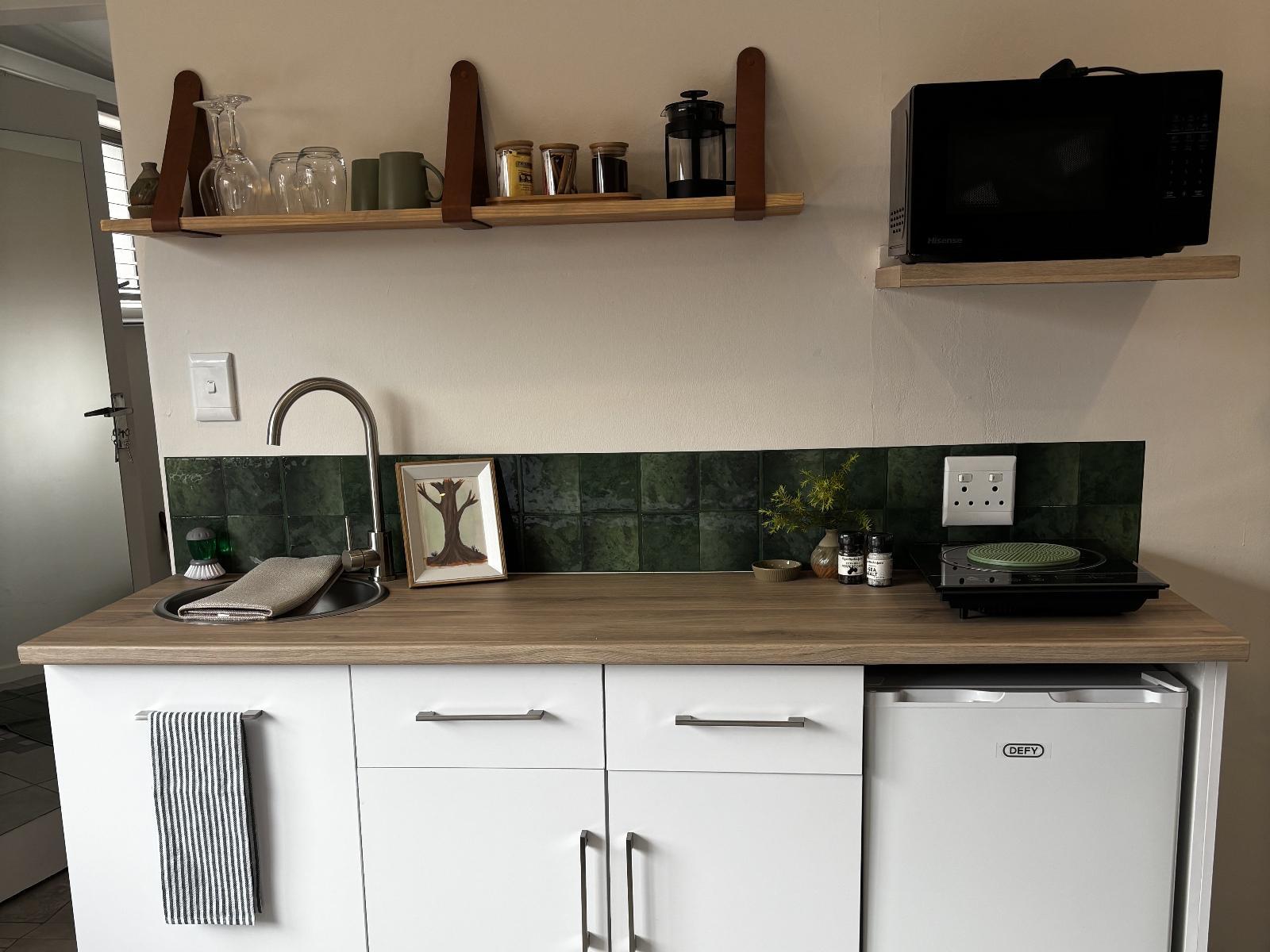 This wheelchair friendly room has a bathroom with a roll-in shower and a ramp leading up to the room. Kitchenette has a Snappy Chef 1-plate induction, microwave and bar fridge. Includes a smart TV with streaming services, whereby you use your own login.