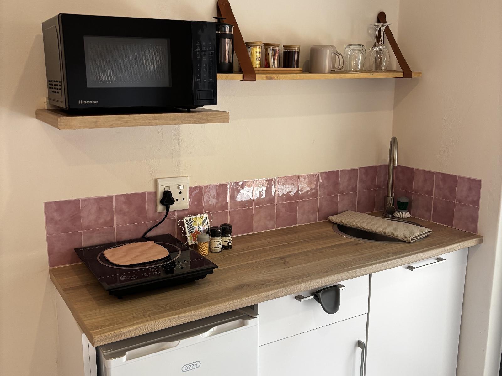 This classic room has a queen bed and an en-suite bathroom with a shower. It includes a kitchenette with a Snappy Chef 1-plate induction, microwave and bar fridge. It has a desk and a smart TV with streaming services, whereby you use your own login.