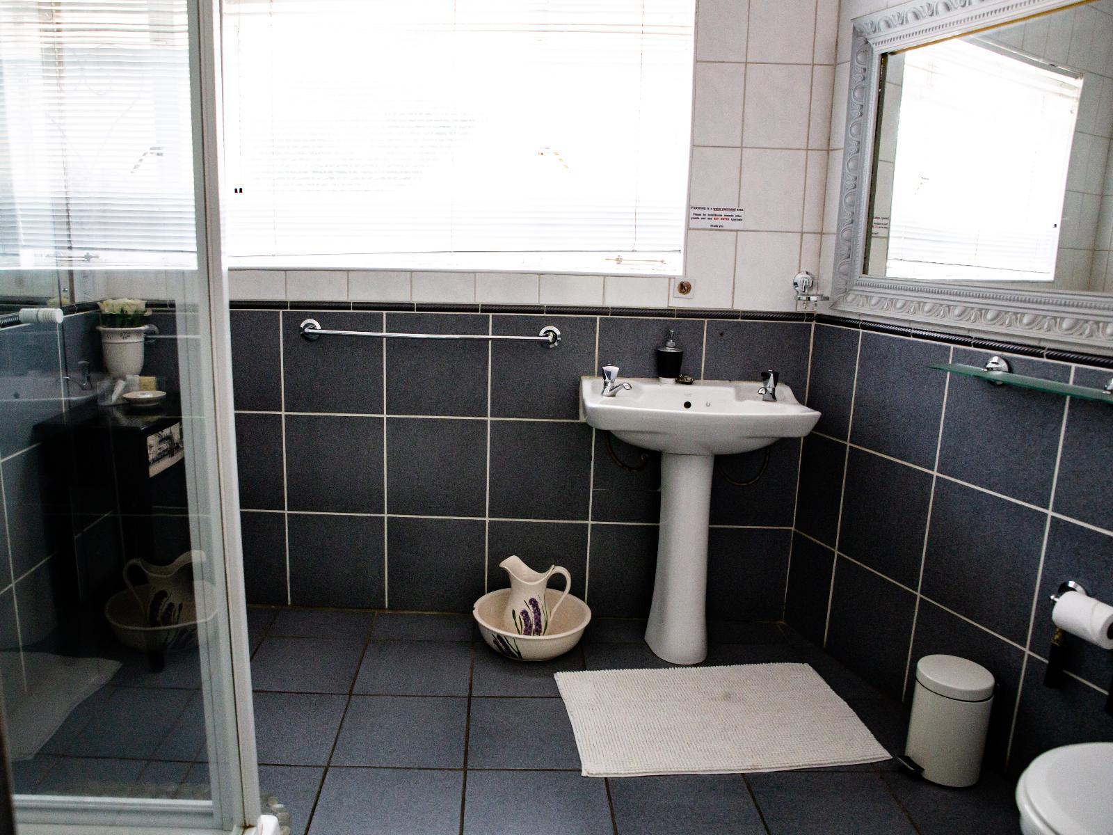 This Premium Upstairs Double with an en-suite bathroom with towels and toiletries. The room comes equipped with a bar fridge, a coffee station and a TV with DStv (extra channels beyond the normal bouquet).